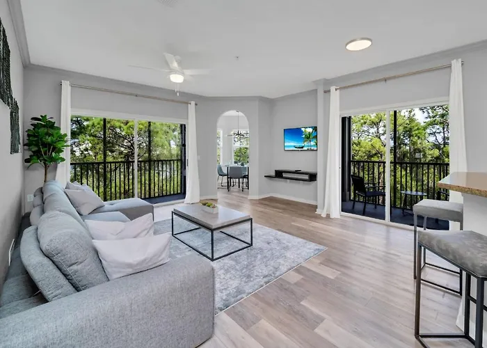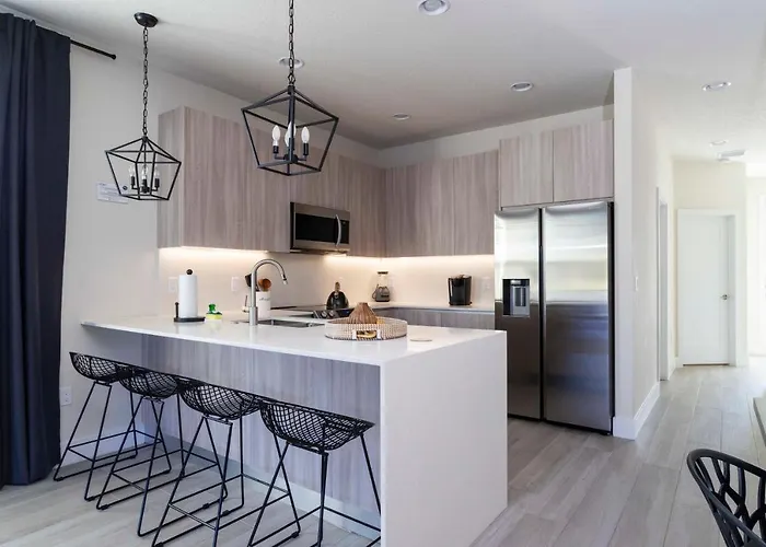 Ao ficar em Near Disney - Spacious 3Br - Pool And Hot Tub, os hóspedes tem acesso à sala de jantar, sofá e Internet de banda larga assim como cozinha totalmente equipada. Esta pousada oferece 3 quartos e 2 banheiros com banheiro separado, banheira e chuveiro.