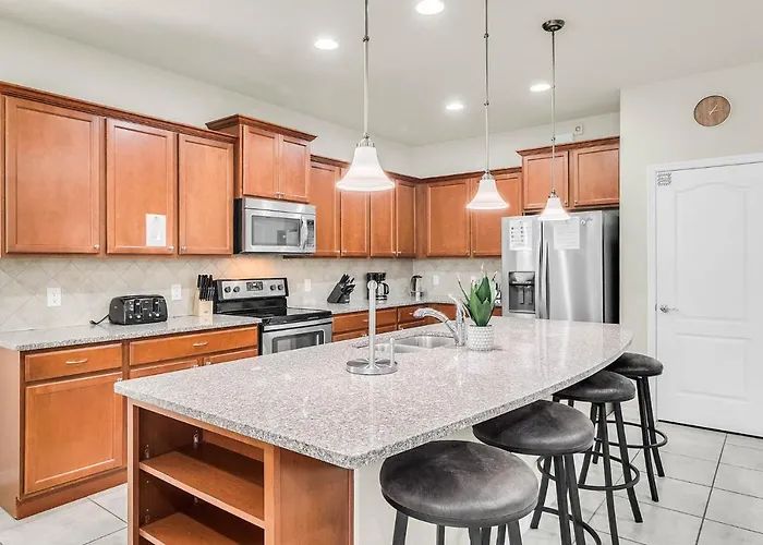 Diese Villa bietet Zimmer mit WLAN, TV und Rauchmeldern sowie eine komplette Küche mit einer Mikrowelle, einem Kühlschrank und einer Waschmaschine. Die Villa Home With Game Room, Less Than 12 Miles To Disney World! bietet 5 Schlafzimmer. Es gibt eine Wellness-Badewanne und eine getrennte Toilette in jedem Badezimmer.